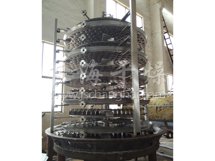 5、安裝方便、占地面積小。干燥器整體出廠,整體運輸,只需吊裝就位,安裝定位非常容易。由于干燥盤層立式布置,立式安裝,既使干燥面積很大,占地面積也很小。